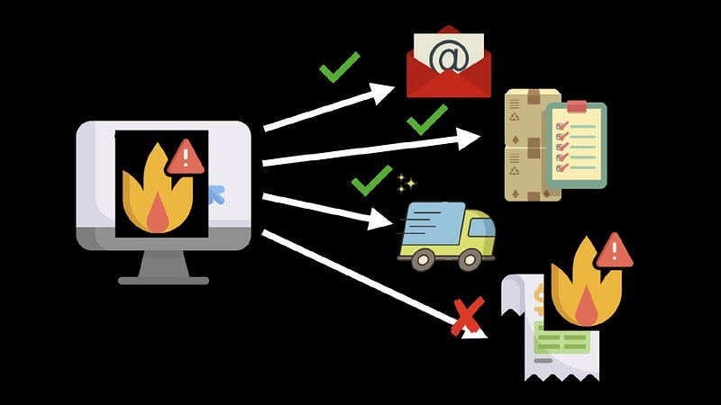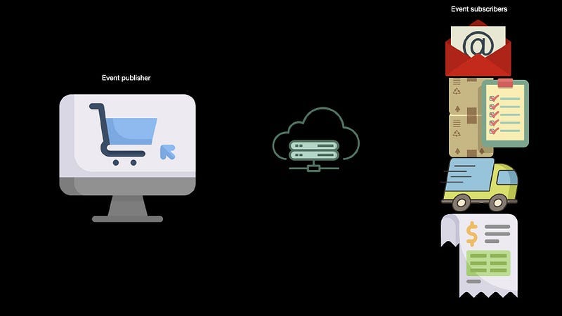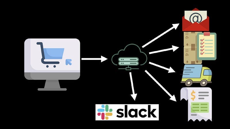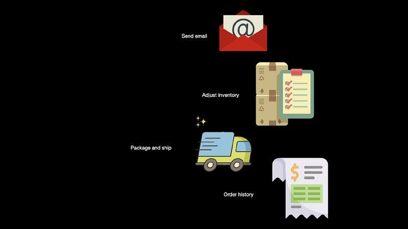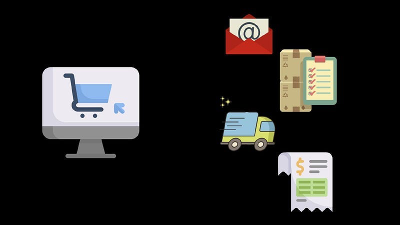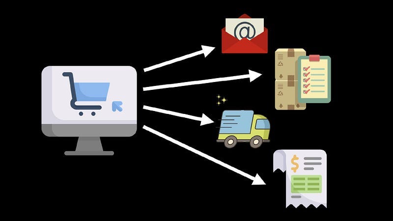 Let’s say we have a standard eCommerce system that allows users to purchase a product on a website. When a purchase is completed, several things need to happen.