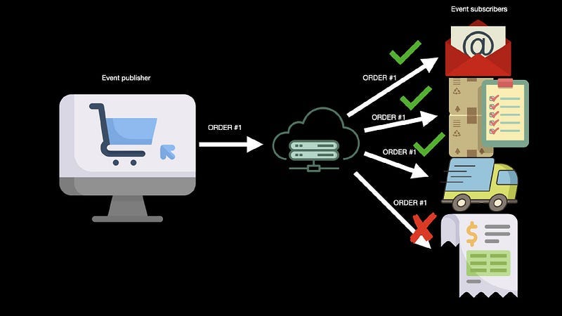 In the example above I kinda breezed through the part where the event subscribers acknowledge that they have completed their tasks. This feature is a key trait of an event-driven architecture. You see, when the router receives an event, it knows which subscribers should receive that event and they must acknowledge they have completed their task. When the router attempts to send the event to the subscriber, if the subscriber doesn’t reply and say “all set here”, the router will retry sending that event until it has been acknowledged. This means that one of your subscribers could be completely down for even an extended amount of time and still receive all of its events when it comes back up, ensuring consistency between your systems. Most event routers even have the capability of reporting when an event fails too many times and it gives up on sending an event. Not ideal, but this does allow for engineers to fix the issue and also allows for manual remediation of the event that failed.