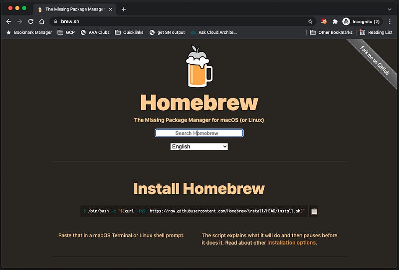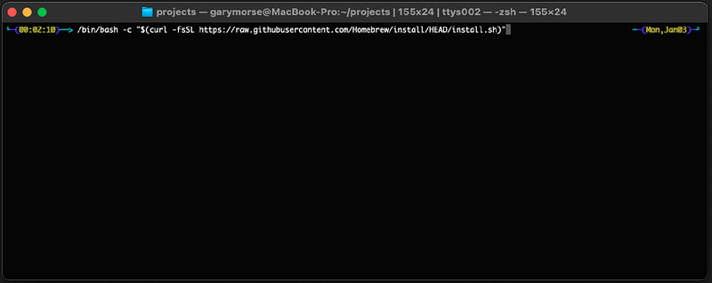 First, head over to the Homebrew website and copy the one-line command, or just copy it here: